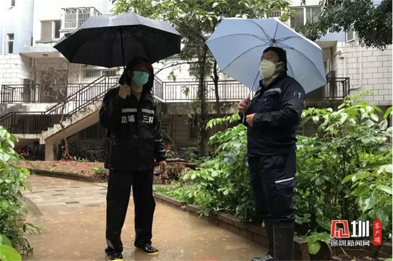 為打贏(yíng)疫情阻擊戰(zhàn),愉園社區(qū)第一時(shí)間聯(lián)合愉園社康中心、新城派出所組建“三位一體”疫情聯(lián)防聯(lián)控工作組。2月13日,暴雨如注,陳科峰一大早剛剛帶著社區(qū)“三位一體”防控小組對(duì)一戶(hù)居家隔離人員完成核酸檢測(cè)。突然又想到和興花園小區(qū)老舊化糞池承載能力有限,今天下暴雨了更容易導(dǎo)致糞水溢出的危險(xiǎn),也不利于疫情防控。于是他馬上冒著大雨趕到現(xiàn)場(chǎng),和物業(yè)人員進(jìn)行溝通?!艾F(xiàn)在一下雨又能聞到刺鼻味道,必須找來(lái)抽水泵及時(shí)抽走!”站在一片積水中,陳科峰要求物業(yè)人員一定要做好接下來(lái)幾天暴雨來(lái)臨的準(zhǔn)備。他再三強(qiáng)調(diào),疫情之下,不能對(duì)居民生活造成不便。