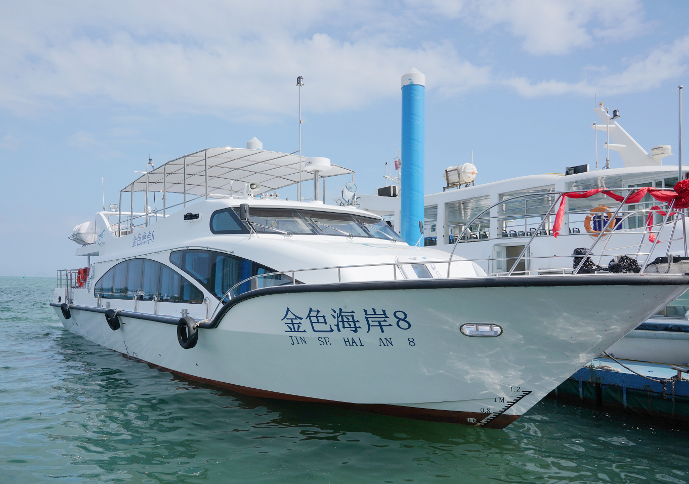 停靠在鹽田金色海岸碼頭處運(yùn)營游船。韋建誠攝