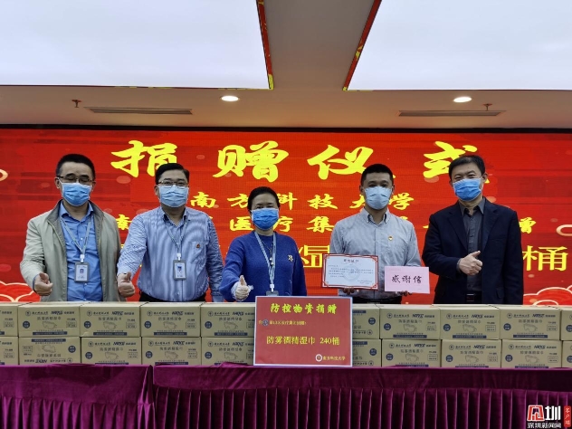 南方科技大學(xué)向南山區(qū)醫(yī)療集團(tuán)總部 捐贈240桶自主研發(fā)的防霧酒精濕巾