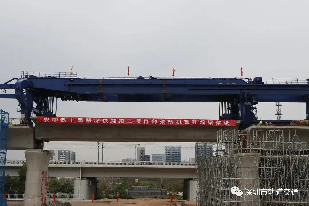 贛深鐵路10標使用架橋機架設首榀箱梁圓滿完成