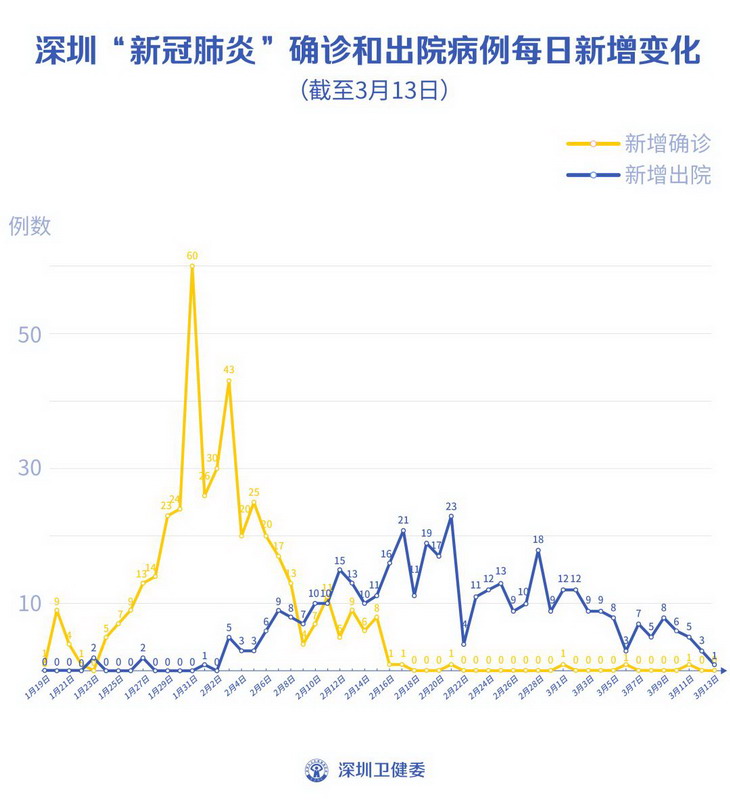 截至3月13日24時,深圳累計報告“新冠肺炎”確診病例420例。3月13日當(dāng)天全市無新增確診病例,當(dāng)天出院病例1例。