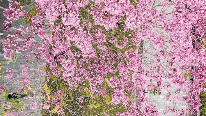 黃花風鈴木迎著和煦的春風驚艷綻放,
