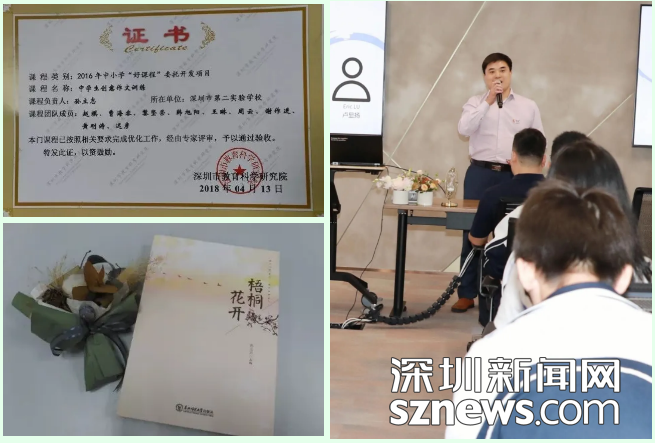 多年來,孫立志老師一直努力實踐“快樂語文”“和語文生活化,生活語文化”的大語文教學理念,提倡并身體力行在語文教學實踐中,創(chuàng)設生活化的情境,讓語文教學與社會實踐緊密結合,激發(fā)學生興趣,引導學生深入創(chuàng)新思考和個性表達,真正形成較強的語文能力,引導學生成長為有學養(yǎng)、有高度、有見地、有情懷的大寫的人。他認為,由于語文學科的工具性和人文性兼具的特性,語文教學對老師的要求較高,語文老師除了要做淵博的閱讀者、深刻的思想者、勤奮的寫作者、敬業(yè)的教育者,還要努力做一個興愛好廣泛、生動有趣的學生心理上的“同齡人”,千方百計引導學生體驗閱讀與思考,創(chuàng)新與寫作的樂趣,從而激發(fā)學生的語文學習的內(nèi)驅(qū)力,真正達到“教是為了不教”的目的。為此,孫立志老師在勤奮教學并取得優(yōu)異成績的同時,努力讓語文教學真正在學生人生打下深深印記,奠基學生終生發(fā)展,他做了很多探索:開系列講座給學生講《春秋戰(zhàn)國——牛人的黃金時代》,開發(fā)全市繼續(xù)教育課給老師講《東周典型人物研究》,耕耘微信公號笑談歷史風云,開發(fā)深圳市好課程《中學生創(chuàng)意作文訓練》,帶領學生公開出版深圳第一部班級學生集體著作《梧桐花開》,指導大批學生在各級各類刊物發(fā)表文章,在各類語文比賽樂促教,以歌助學,只不過是孫立志老師教學探索創(chuàng)新的一葉一花,相信師者每一點守責盡心的努力,都會助力學生人生之樹上結出香甜的果實。