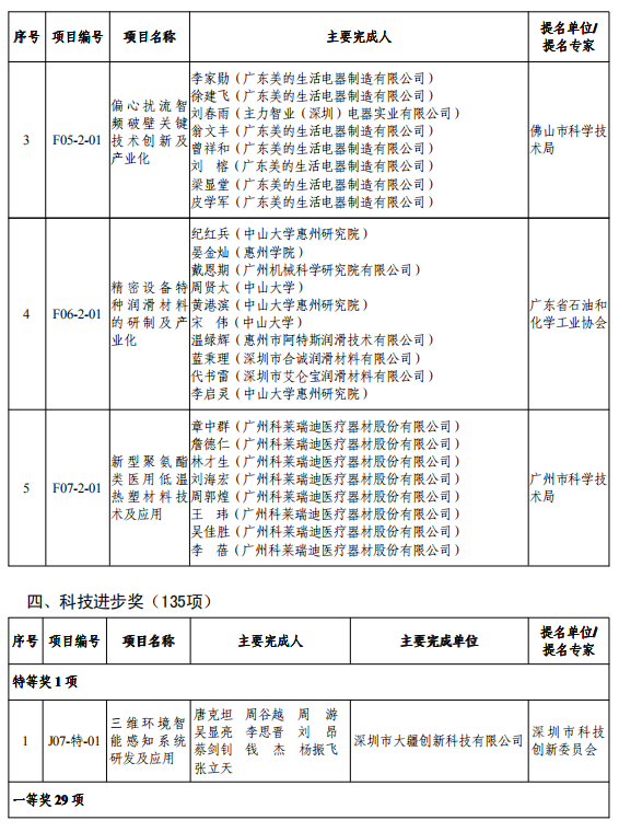 大會頒發(fā)了2019年度廣東省科學技術獎自然科學獎一等獎12項,二等獎12項;技術發(fā)明獎一等獎9項,二等獎5項;科技進步獎特等獎1項,一等獎29項,二等獎105項。