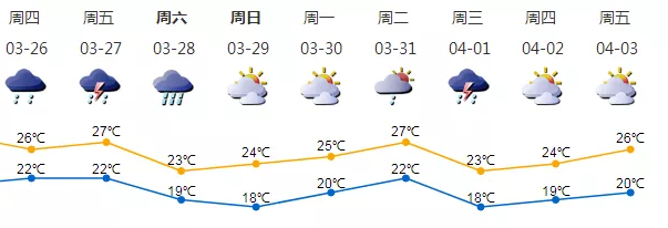 26日高空槽東移有雷雨