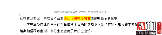 記者在《環(huán)評(píng)報(bào)告》中看到,有關(guān)表述存在錯(cuò)誤屬實(shí),在對(duì)深圳灣航道疏浚工程(一期)項(xiàng)目可實(shí)現(xiàn)的目標(biāo)的闡述中,將“深圳市的目標(biāo)”闡述為“湛江市的目標(biāo)”;將“深圳灣紅樹林”表述成“湛江灣紅樹林”;將“深圳市國(guó)民經(jīng)濟(jì)”表述成“湛江市國(guó)民經(jīng)濟(jì)”;將“深圳海事局”表述成“湛江海事局”等。