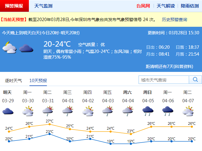 28日降雨結束 未來一周深圳云量較多,部分時間有雨