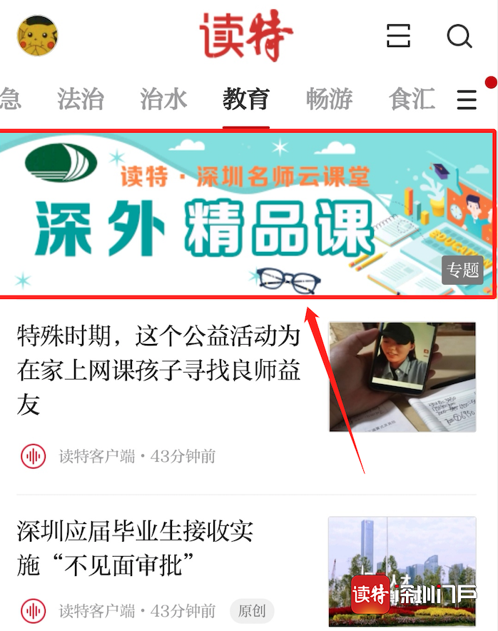 打開(kāi)讀特客戶(hù)端,點(diǎn)擊“教育”頻道