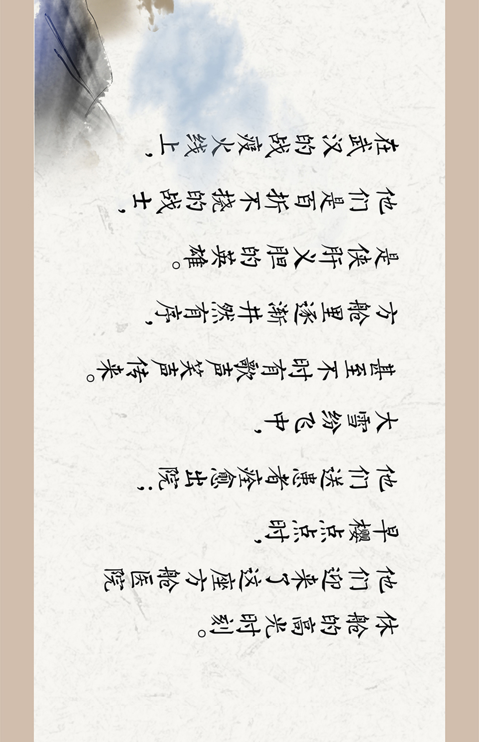 50多天里,他們在武漢東西湖方艙醫(yī)院,在武漢雷神山醫(yī)院,在武漢優(yōu)撫醫(yī)院,在荊州市第一人民醫(yī)院,在荊州監(jiān)利縣人民醫(yī)院和監(jiān)利縣中醫(yī)院同時間賽跑、與病魔較量,用醫(yī)者仁心,用赤膽無畏,用俠之大義,打贏疫情防控武漢保衛(wèi)戰(zhàn),荊州保衛(wèi)戰(zhàn)。