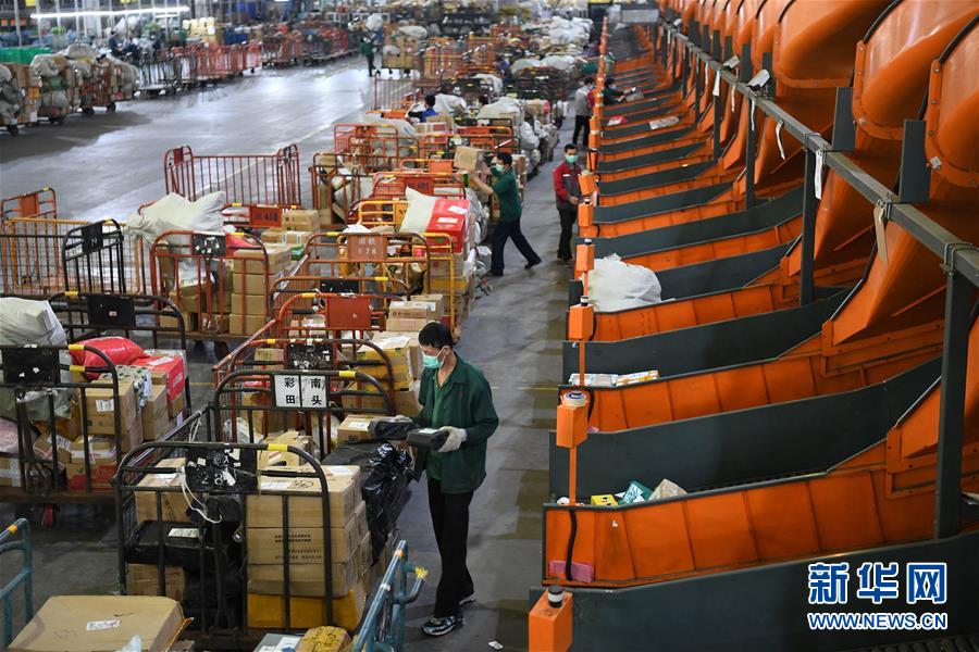 4月1日,在深圳郵件處理中心,工作人員在分揀郵件。據(jù)深圳市郵政管理局介紹,春節(jié)以來,深圳郵政快遞業(yè)累計向湖北運送各類醫(yī)療、防疫物資超2萬批次,累計為深圳市民配送防疫物資和生活必需品超過2.5億件,為防疫物資和群眾基本生活必需品送達提供了有力保障。新華社記者 梁旭 攝