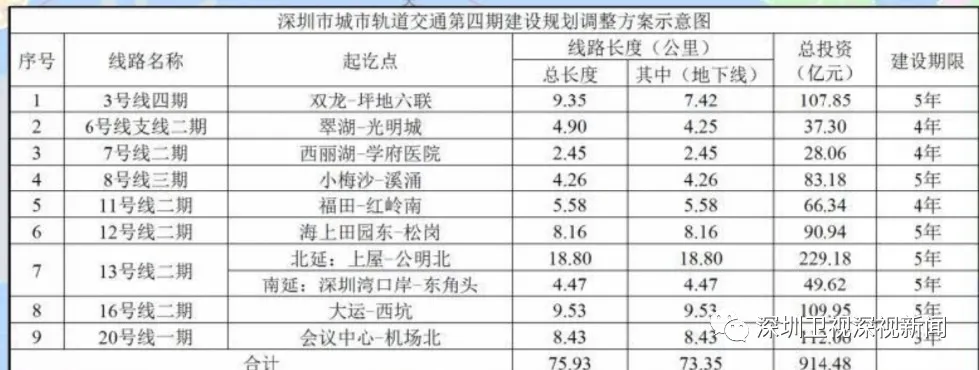 16號線二期工程自大運站至西坑站,線路長度9.53公里,為地下線,采用A型車6輛編組;總投資109.95億元,建設(shè)工期5年。