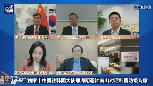 4月10日15時(shí),中國(guó)駐韓國(guó)大使邢海明邀請(qǐng)鐘南山院士與韓國(guó)防疫專家李鐘求教授在線交流。鐘南山專門(mén)制作了一個(gè)題為“抗擊新冠肺炎的中國(guó)經(jīng)驗(yàn)”的PPT,向韓國(guó)朋友介紹中國(guó)經(jīng)驗(yàn)。