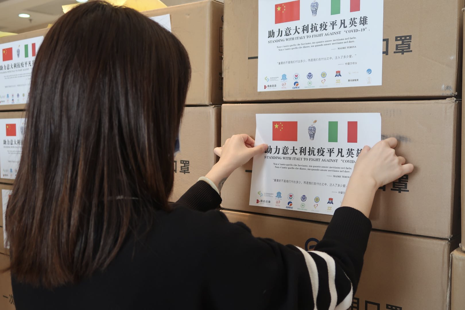 原標(biāo)題:3噸物資集結(jié)完畢,助力意大利抗疫!深圳再次向國際友誠捐贈防疫物資