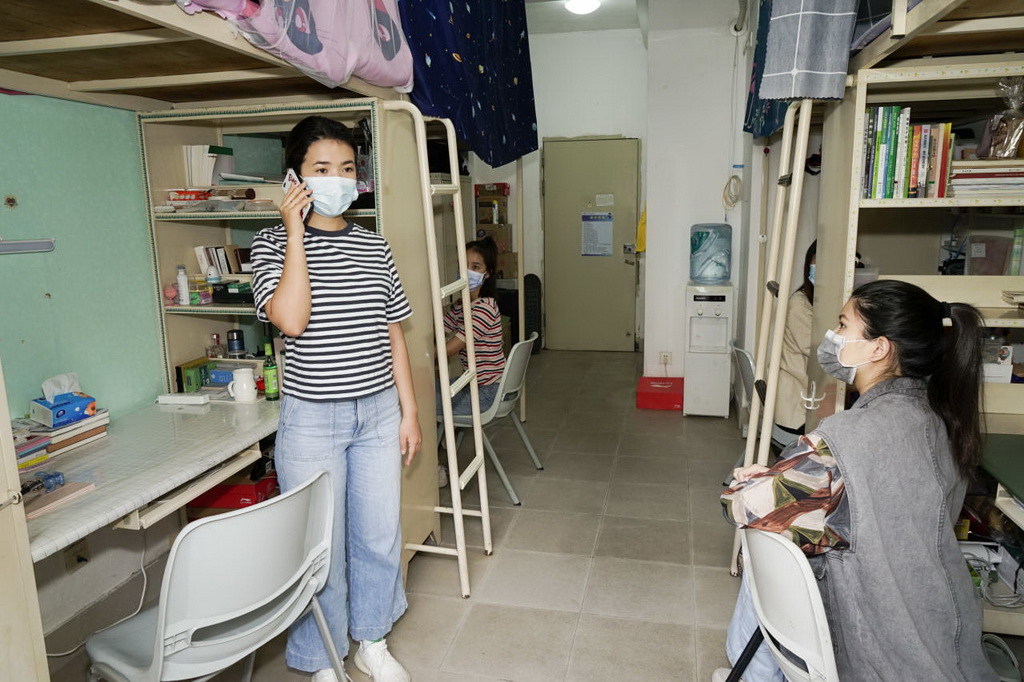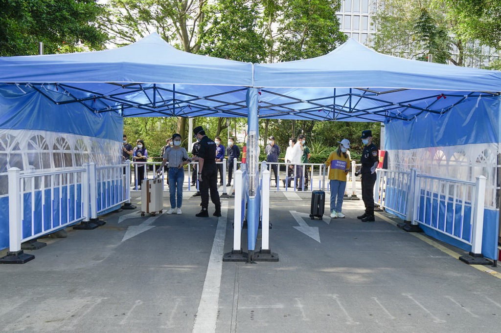 帶行李箱的學(xué)生走專用通道,依次完成掃碼核驗(yàn)、測(cè)量體溫等流程后進(jìn)入校園。
