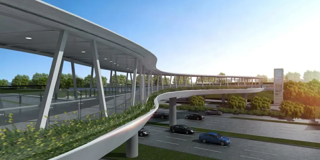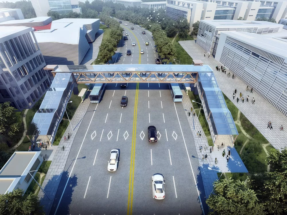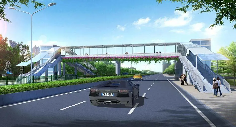 跨越南山區(qū)沙河西路,西接大沖片區(qū),東接沙河西生態(tài)長(zhǎng)廊,橋長(zhǎng)約113米,橋面凈寬約4.3米,主橋共4跨。天橋設(shè)計(jì)容景觀(guān)、造型、燈光、周邊環(huán)境于一體,設(shè)置無(wú)障礙觀(guān)光電梯,采用鋼箱梁及花崗巖面磚鋪裝、綠化自動(dòng)滴灌等。天橋的建設(shè)將大大縮短居民繞行時(shí)間,對(duì)完善周邊居民出行環(huán)境具有重要意義。