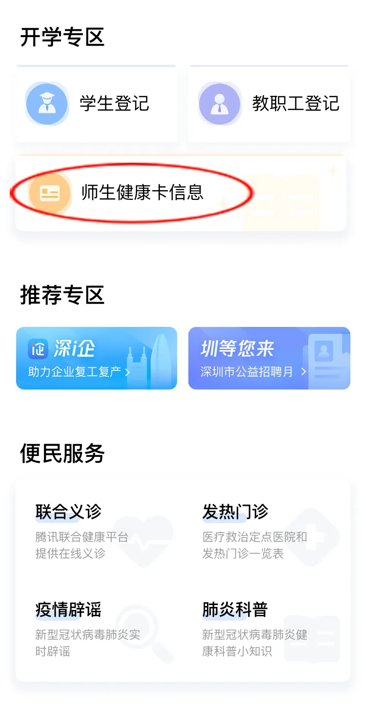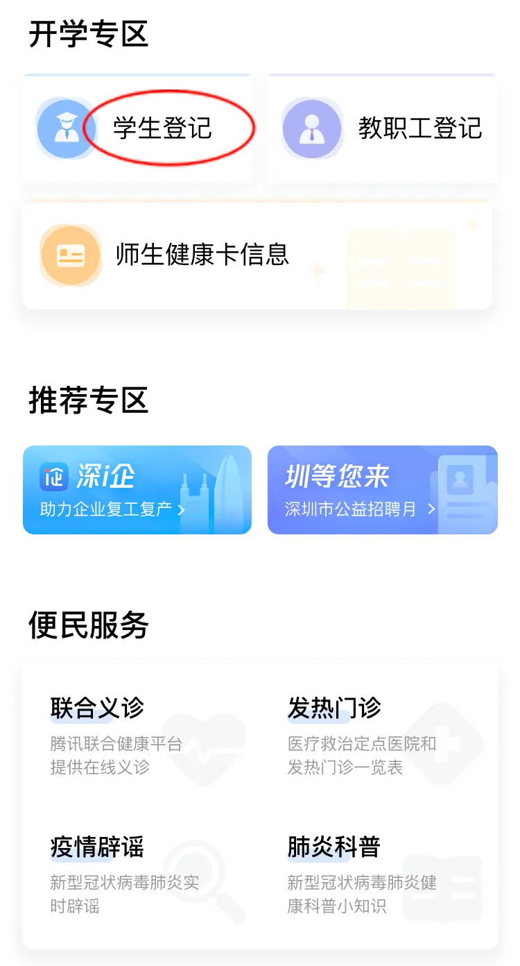 在開學(xué)專區(qū),點擊“學(xué)生登記”進行自主申報和實名認證。