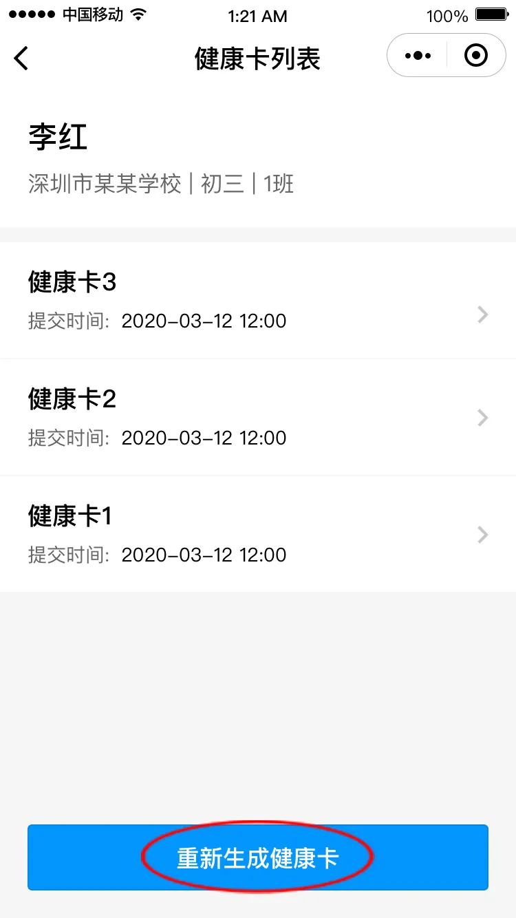 若不符合返校條件,需在符合條件后,點(diǎn)擊“重新生成健康卡”再次申報(bào)。