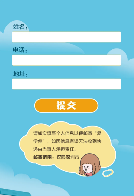 注意!大家在填寫信息的時(shí)候一定要檢查檢查再檢查!如果信息填寫錯(cuò)誤,可就收不到我們的復(fù)學(xué)包咯~
