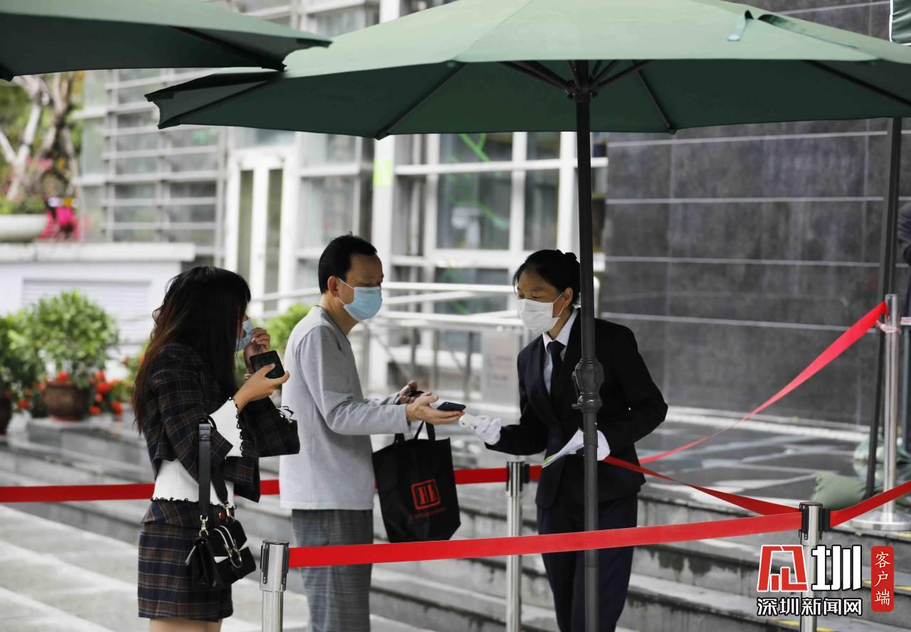圖書館工作人員正在為入館市民測量體溫。