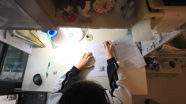 對(duì)于這次高考,程靈鈞并不焦慮:“高考本質(zhì)上是對(duì)考生運(yùn)用知識(shí)能力的考查,沒有必要把它當(dāng)作特殊的考試對(duì)待,平常心就好。”這也得益于她早在高二上學(xué)期就平穩(wěn)度過了因分班帶來的“焦慮期”,盡管這花了差不多一整個(gè)學(xué)期,但此后她心態(tài)就非?!胺€(wěn)”,幫助她度過了這段在家學(xué)習(xí)的時(shí)光?!胺敌:笪視?huì)盡量去適應(yīng),讓心態(tài)保持平和,安心度過在校備考的階段,自然而然地去面對(duì)高考。”她說。