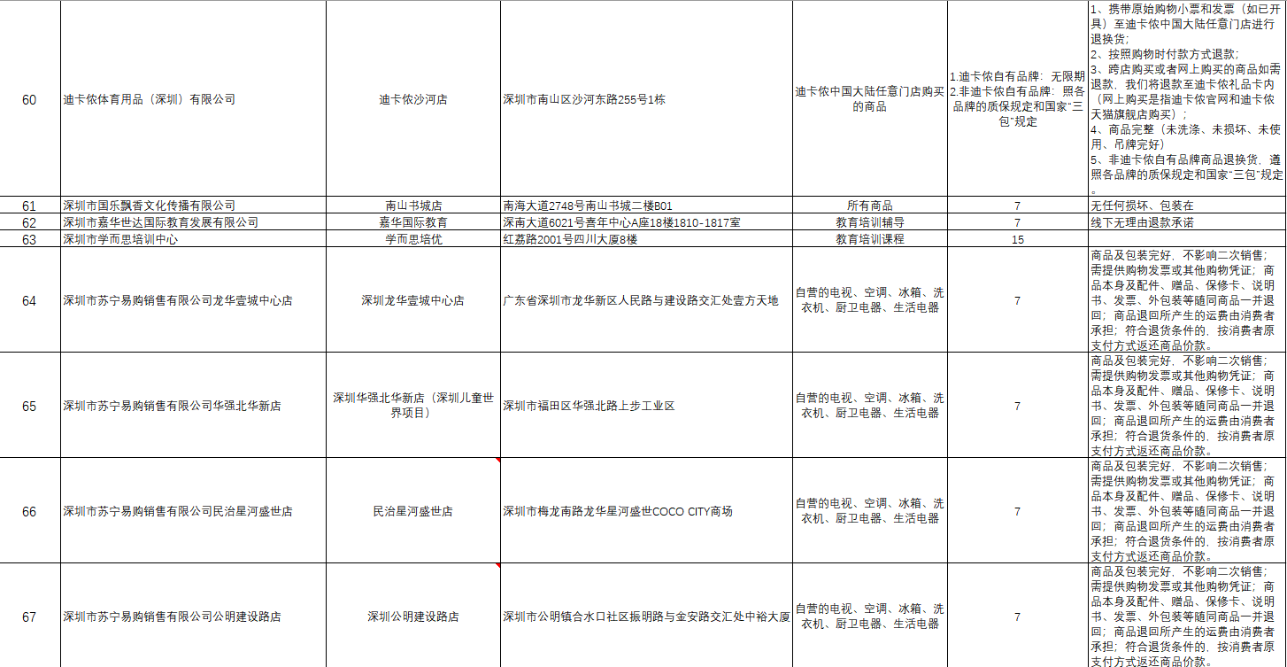 附件:首批參與“線下無理由退貨承諾”企業(yè)名單
