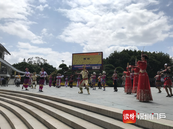 “五十六個(gè)民族親親一家,就像百花園里盛開的花……”5月1日上午10點(diǎn)半,錦繡中華民俗村入口的廣場(chǎng)響起了《母親是中華》的歌聲,身著民族服飾的工作人員們載歌載舞迎接游客的到來(lái),表演吸引了游客們駐足觀看、拍照。民俗村工作人員告訴記者,疫情期間暫停的開園迎賓表演在假期首日恢復(fù),“五一”期間景區(qū)還推出了“民俗游園會(huì)活動(dòng)”。