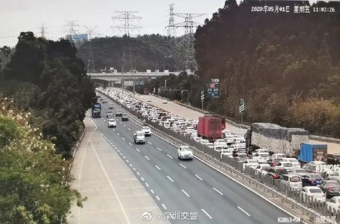 5月1日上午8時(shí)起,沈海高速荷坳段東行、深鹽二通道東行均出現(xiàn)車多緩行,并持續(xù)近10個(gè)小時(shí)的車多狀態(tài),絕大多數(shù)為出深車輛。