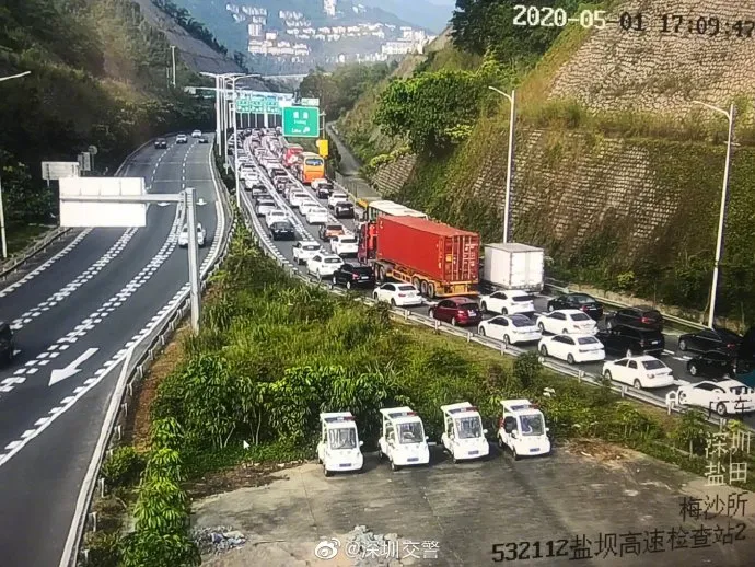 5月1日上午8時起,沈海高速荷坳段東行、深鹽二通道東行均出現(xiàn)車多緩行,并持續(xù)近10個小時的車多狀態(tài),絕大多數(shù)為出深車輛。