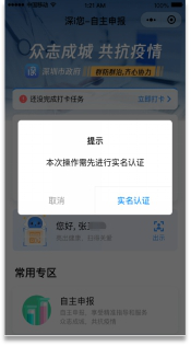 ①在首頁開學(xué)專區(qū)點擊“學(xué)生登記”,若家長之前未進行自主申報和實名認證,系統(tǒng)將彈出提示,請家長本人先完成自主申報和實名認證。