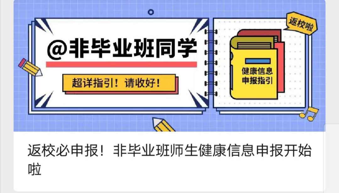 市教育局溫馨提示,學(xué)校將根據(jù)健康申報的情況確定返校師生員工的名單。所以一定要如實、準(zhǔn)時申報以免影響返校。