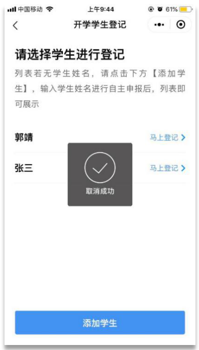 ①點擊“學(xué)生登記”,進(jìn)入開學(xué)學(xué)生登記列表,展示申報人員列表,選擇對應(yīng)的人員進(jìn)行取消登記。