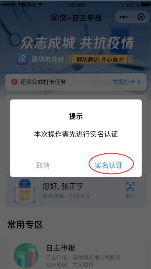 第二步:點擊底部菜單欄“健康申報”-“深i您”進(jìn)入申報系統(tǒng)。