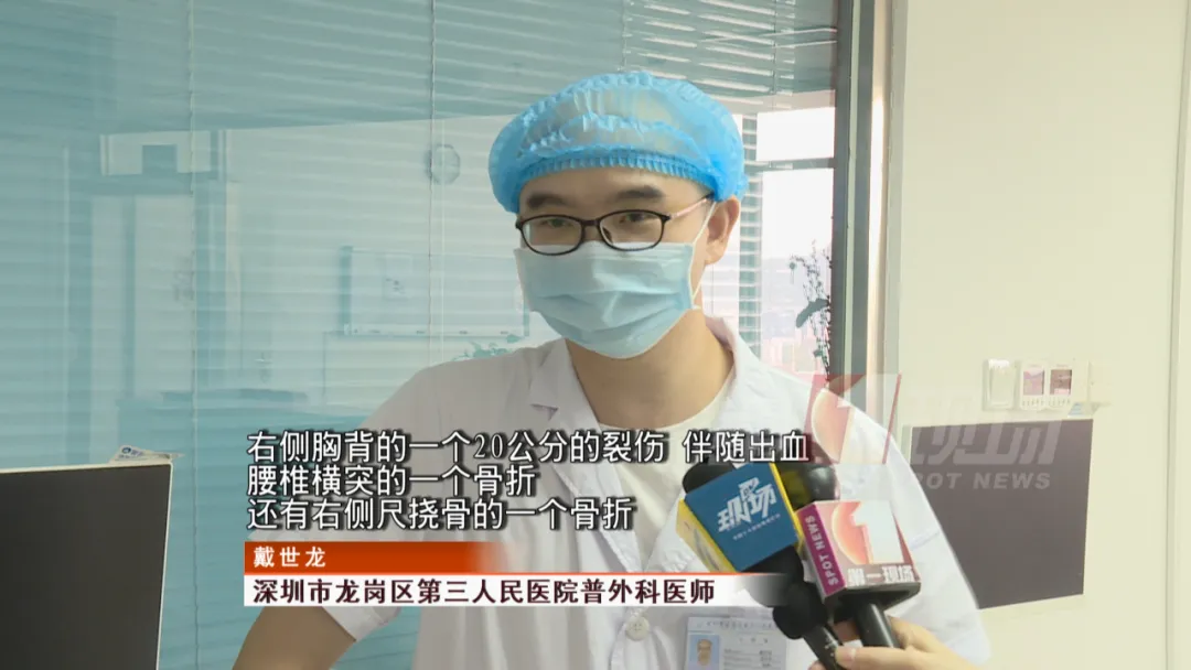隨后,黃師傅被送往龍崗區(qū)第三人民醫(yī)院救治。主治醫(yī)生戴世龍表示,黃師傅沒有生命危險,但是至少需要三個月才能痊愈。