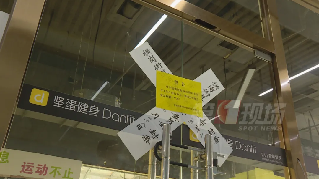 記者來到事發(fā)的新世界廣場三樓,發(fā)現(xiàn)通往天臺的大門已經(jīng)上鎖,而樓梯過道則是堆滿了裝修器材,裝修工人墜落的健身房區(qū)域已被貼上封條。