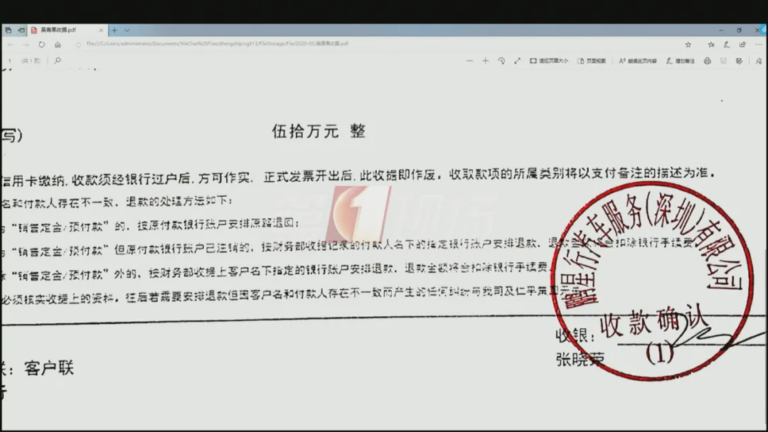 ↑ 50萬首付款收據(jù),上有車行公章
