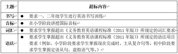 1.培訓不得超出現(xiàn)行義務(wù)教育英語課程標準規(guī)定的各學段分級標準,禁止將初中知識類的教學內(nèi)容提前至小學教學與測評,禁止將現(xiàn)行普通高中英語課程標準規(guī)定的知識類教學內(nèi)容提前至初中教學與測評。