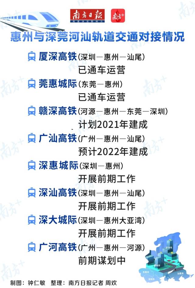 值得一提的是,待廣汕高鐵2022年建成后,從惠州到廣州、汕尾也只要半小時。贛深高鐵和廣汕高鐵還將在惠州實現(xiàn)轉換銜接。加上正在開展前期工作的深惠城際、深汕高鐵、深大城際等,軌道上深圳都市圈將初步成形。而惠州也將成為大灣區(qū)連接粵東、粵北以及閩贛地區(qū)的樞紐門戶。