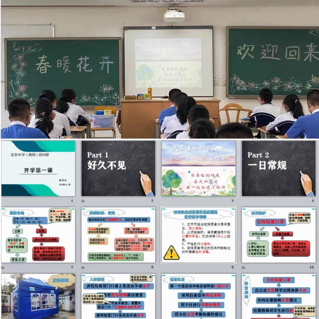 學(xué)校在校門外設(shè)立進(jìn)入通道,讓學(xué)生按照提前設(shè)置好的路線指引, 分批分流 進(jìn)入校園。學(xué)校課室的課桌擺放呈“一人一桌”制,樓道貼上站位地標(biāo),充分拉開學(xué)生安全間距離, 少交談少聚集 。除此之外,學(xué)校通過取消課間操、眼操等方式壓縮課間,實(shí)現(xiàn) 錯峰放學(xué) 。各班門前設(shè)置無接觸交作業(yè)區(qū),放置免洗洗手液,另外還特地為學(xué)生發(fā)放常規(guī)指引小冊子,制作了《寶安中學(xué)(集團(tuán))2020年春季學(xué)期返校復(fù)學(xué)指引》手繪視頻,開設(shè)了以防疫為主要內(nèi)容的“開學(xué)第一課”,讓防疫知識 入耳入腦入心 。