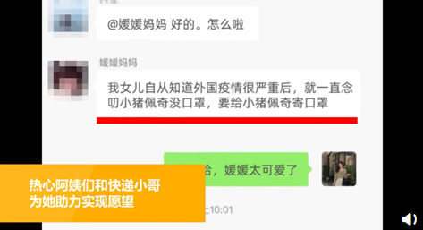近日,三亞一小姑娘看到動畫片里的小豬佩奇沒戴口罩特別著急,于是囑咐媽媽寄箱口罩給佩奇,還貼心地寫了英文信囑咐它。