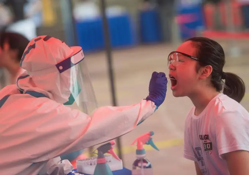 圖:在武漢東西湖區(qū)一檢測(cè)點(diǎn),工作人員對(duì)市民進(jìn)行核酸檢測(cè)/新華社