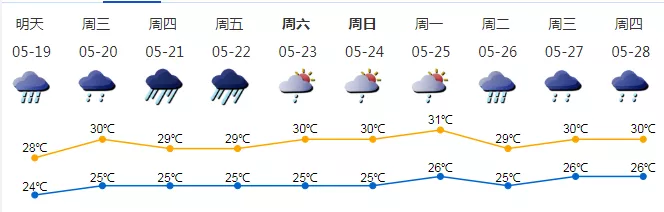 大雨→雷陣雨→暴雨→雷陣雨→大雨