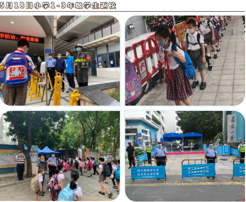 見(jiàn)圳客戶(hù)端·深圳新聞網(wǎng)2020年5月18日訊 5月18日,深圳市福田區(qū)迎來(lái)第三批返校師生,來(lái)自全區(qū)各小學(xué)1—3年級(jí)近6萬(wàn)名小學(xué)生正式按下“復(fù)課鍵”。至此,福田區(qū)中小學(xué)已全面復(fù)課。據(jù)統(tǒng)計(jì),5月18日,福田公安分局出動(dòng)警力885人次,護(hù)學(xué)崗力量963人次,保障返校秩序有效安全。