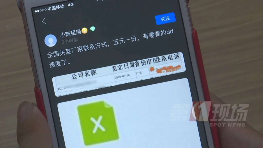 在一個(gè)社交平臺(tái)上,就有以33元的單價(jià),收購(gòu)十萬(wàn)個(gè)頭盔的買(mǎi)主。還有的人則是手握訂單,要找生產(chǎn)頭盔的廠商。更有甚者,以頭盔廠商的聯(lián)系方式作為資源,以五元4000個(gè)聯(lián)系方式,進(jìn)行叫賣(mài)。