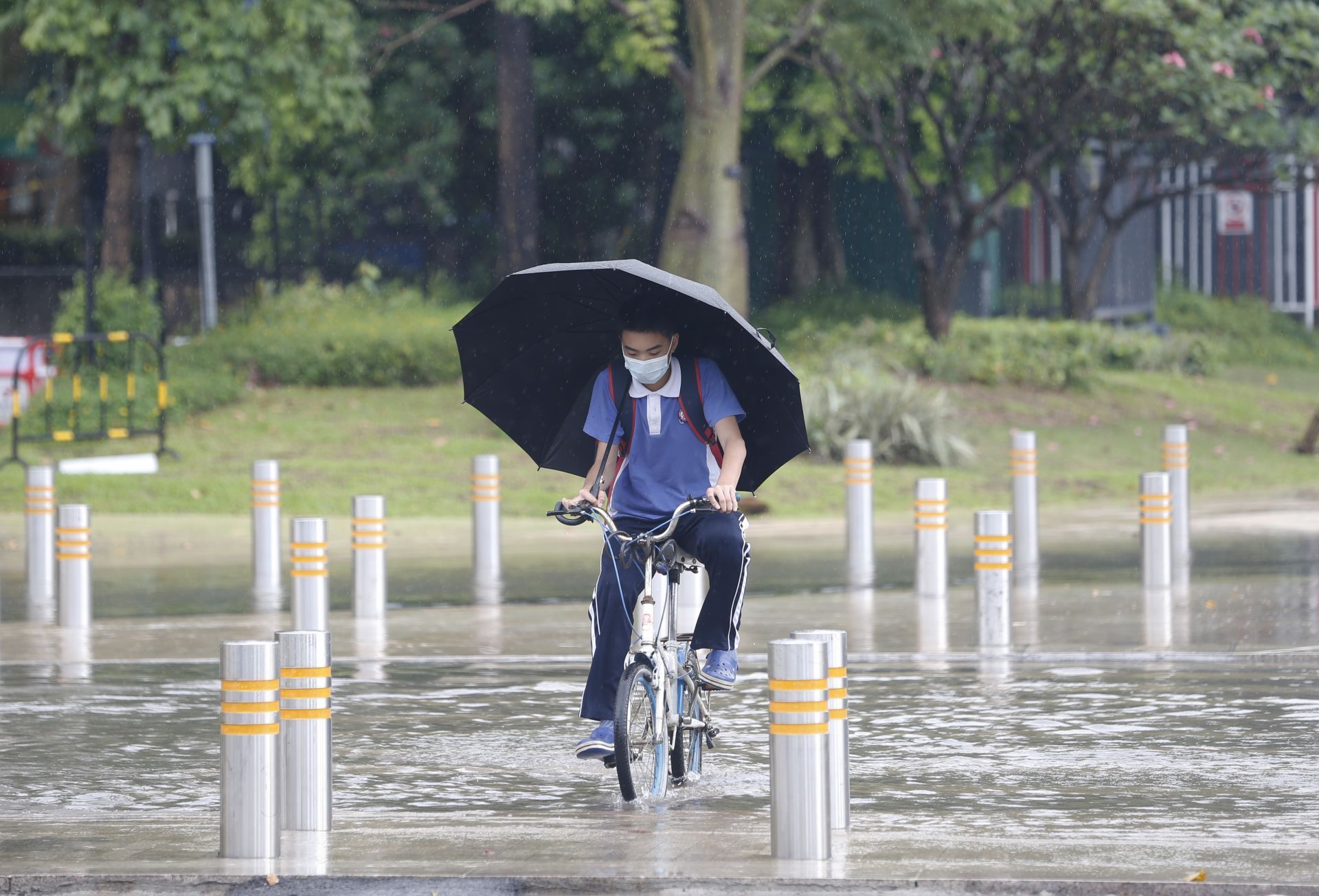 短時(shí)強(qiáng)降雨午間再次來襲 市民穿拖鞋帶雨傘出行