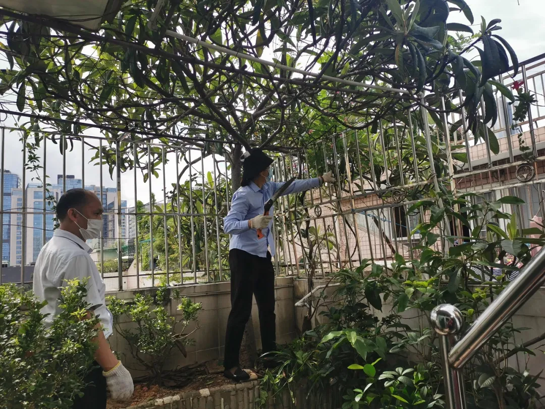 昨日下午,馬家龍社區(qū)黨委和彩虹居森加物業(yè)管理有限公司負責(zé)人全面摸排了小區(qū)天臺種樹情況,并派專人對存有同類問題7套住宅樓頂進行清理。截至記者發(fā)稿前,已全部移除清理完畢。