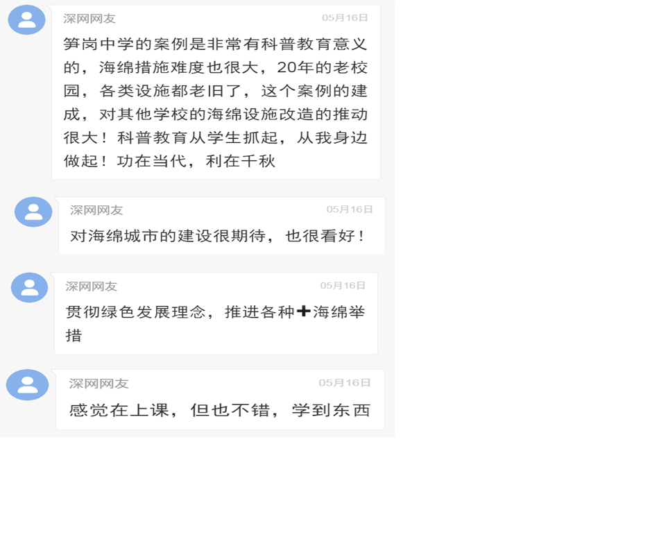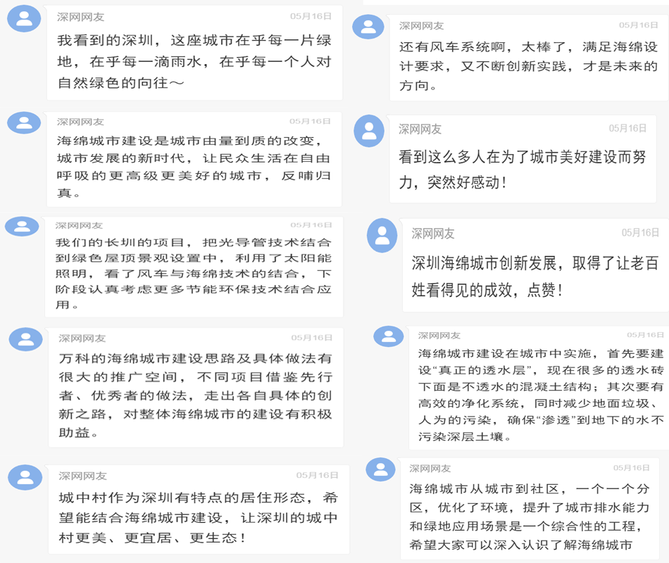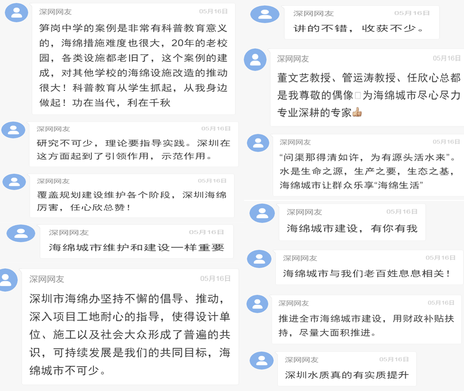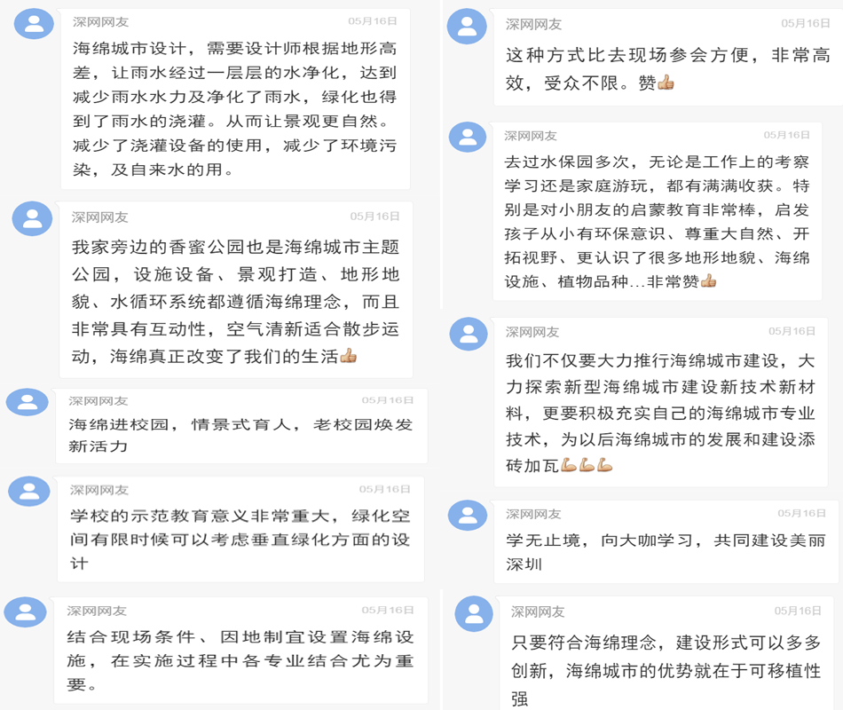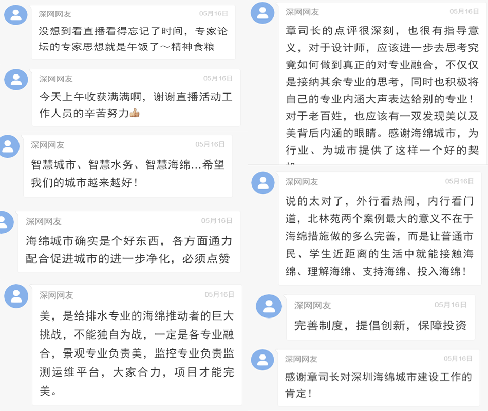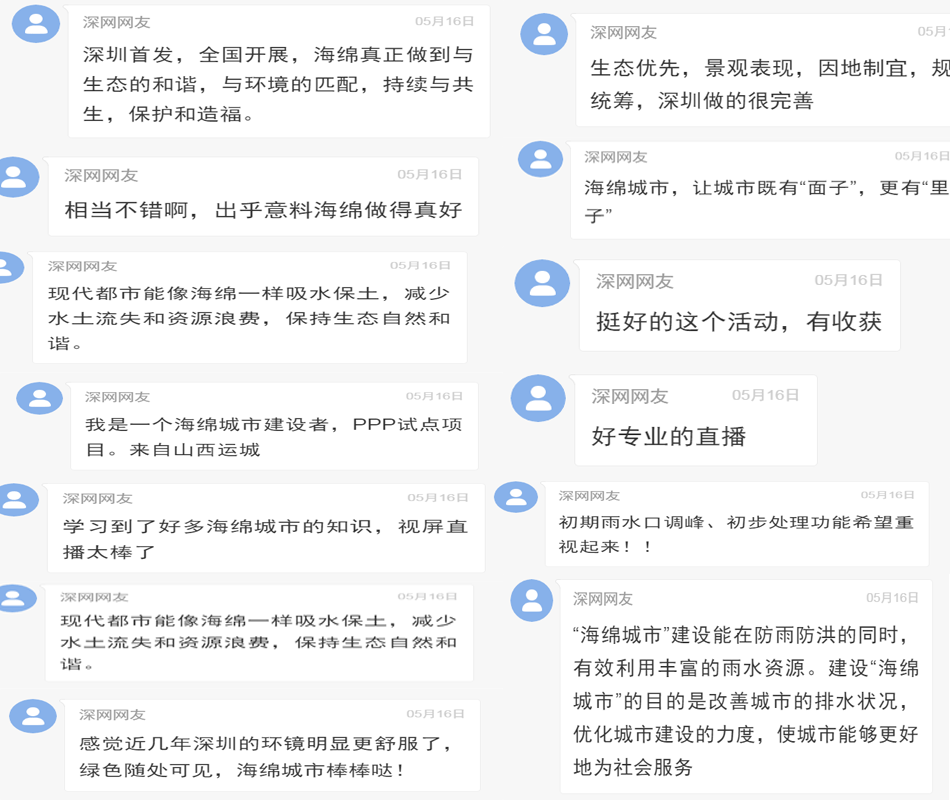 見圳客戶端·深圳新聞網(wǎng)2020年6月5日(見圳客戶端、深圳新聞網(wǎng)記者 葉梅)5月16日,深圳市海綿城市建設(shè)工作領(lǐng)導(dǎo)小組辦公室聯(lián)合深圳新聞網(wǎng),在深網(wǎng)直播平臺對《深圳市海綿城市建設(shè)2019年度優(yōu)秀經(jīng)驗分享會暨2020年度海綿城市獎勵申報啟動儀式》進行了線上全程直播。為答謝深圳網(wǎng)友對直播的全程關(guān)注,我們在后臺挑選出100位網(wǎng)友的精彩留言,為大家送上U盤一個,請在截圖中留言的網(wǎng)友于一周內(nèi)(6月12日前)自主撥打聯(lián)系人電話認領(lǐng)禮品。