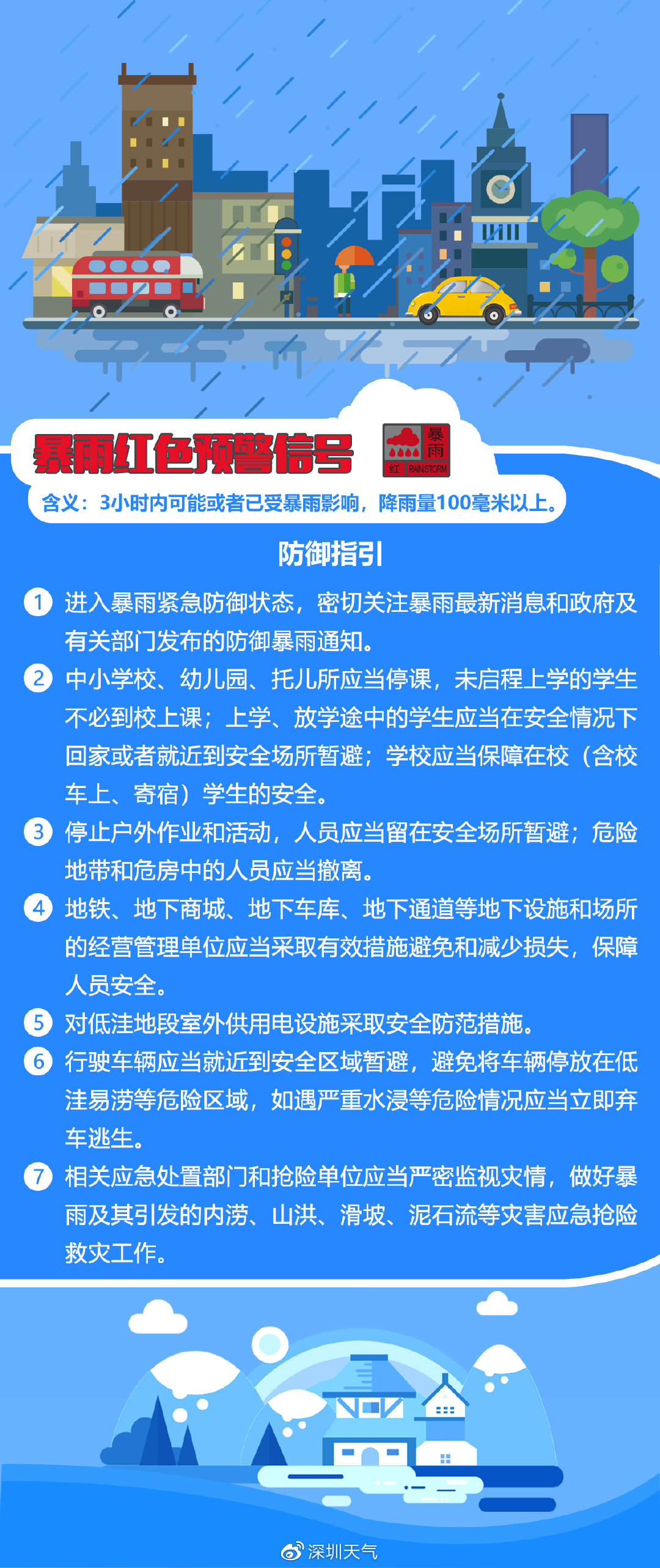 深圳市氣象臺于2020年6月8日13時(shí)05分在大鵬新區(qū)和東部海區(qū)發(fā)布暴雨紅色分區(qū)預(yù)警,全市進(jìn)入暴雨緊急防御狀態(tài),請迅速做好防御工作。