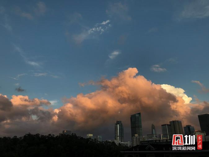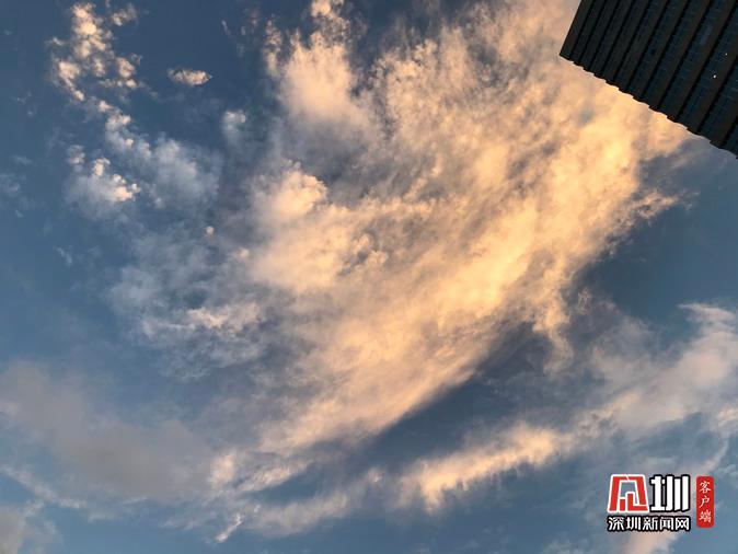 下午19點(diǎn),夕陽(yáng)將云朵染成橙色。