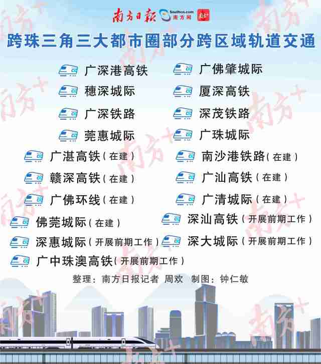 廣州、深圳“CP感”滿滿,通過廣深港高鐵、穗深城際、廣深鐵路等快速互聯(lián),最快半小時(shí)互通。而廣州地鐵28號(hào)線將連接佛山、廣州、東莞,支線還擬延伸至惠州。廣州地鐵18號(hào)線則規(guī)劃深入中山、珠海。肇慶、中山、江門、佛山等也紛紛“到深圳去”……