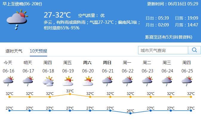 16日氣溫27-32℃,未來(lái)兩天局地雷雨多發(fā),出行記得攜帶雨具。